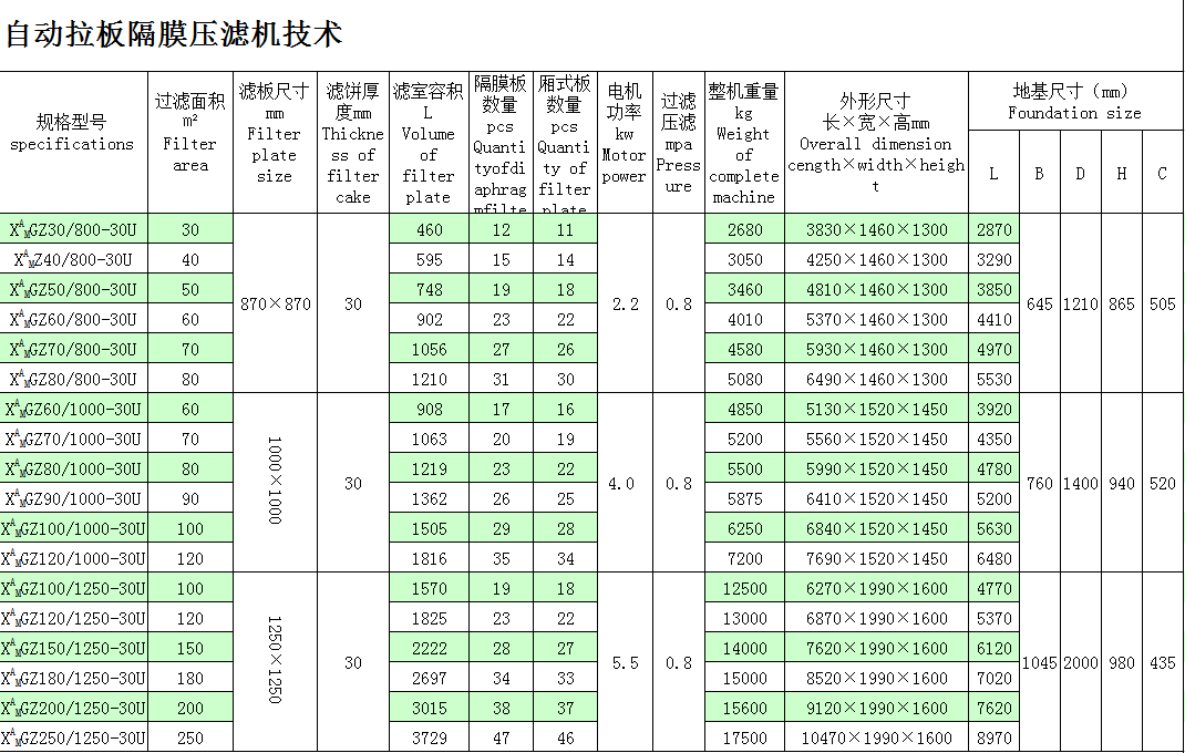 產品介紹:產品簡介 隔膜壓濾機是由隔膜濾板(隔膜濾板是由兩片聚丙烯膜片與高強度聚丙烯芯板熱融合而成)和廂式濾板排列組成濾室,在輸料泵的壓力作用下將料將輸入濾室,通過濾布將料漿